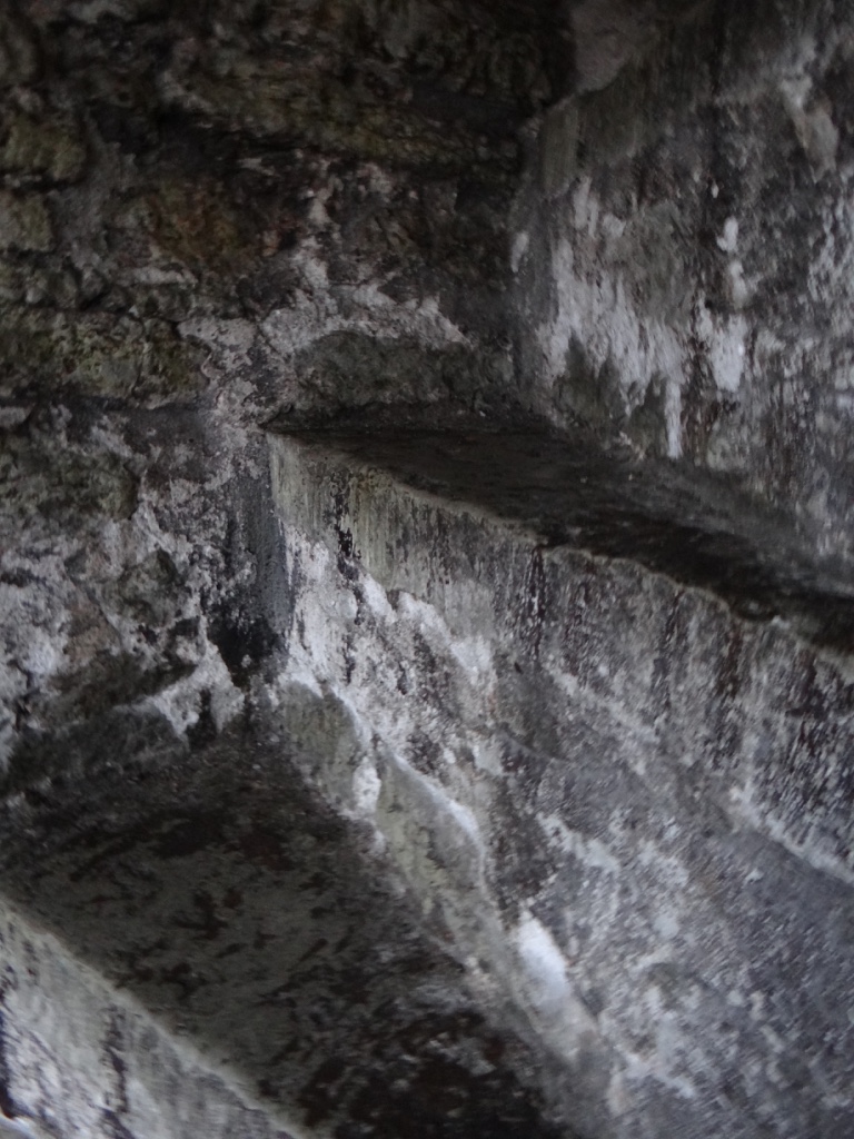 some mighty tall steps in a narrow tunnel