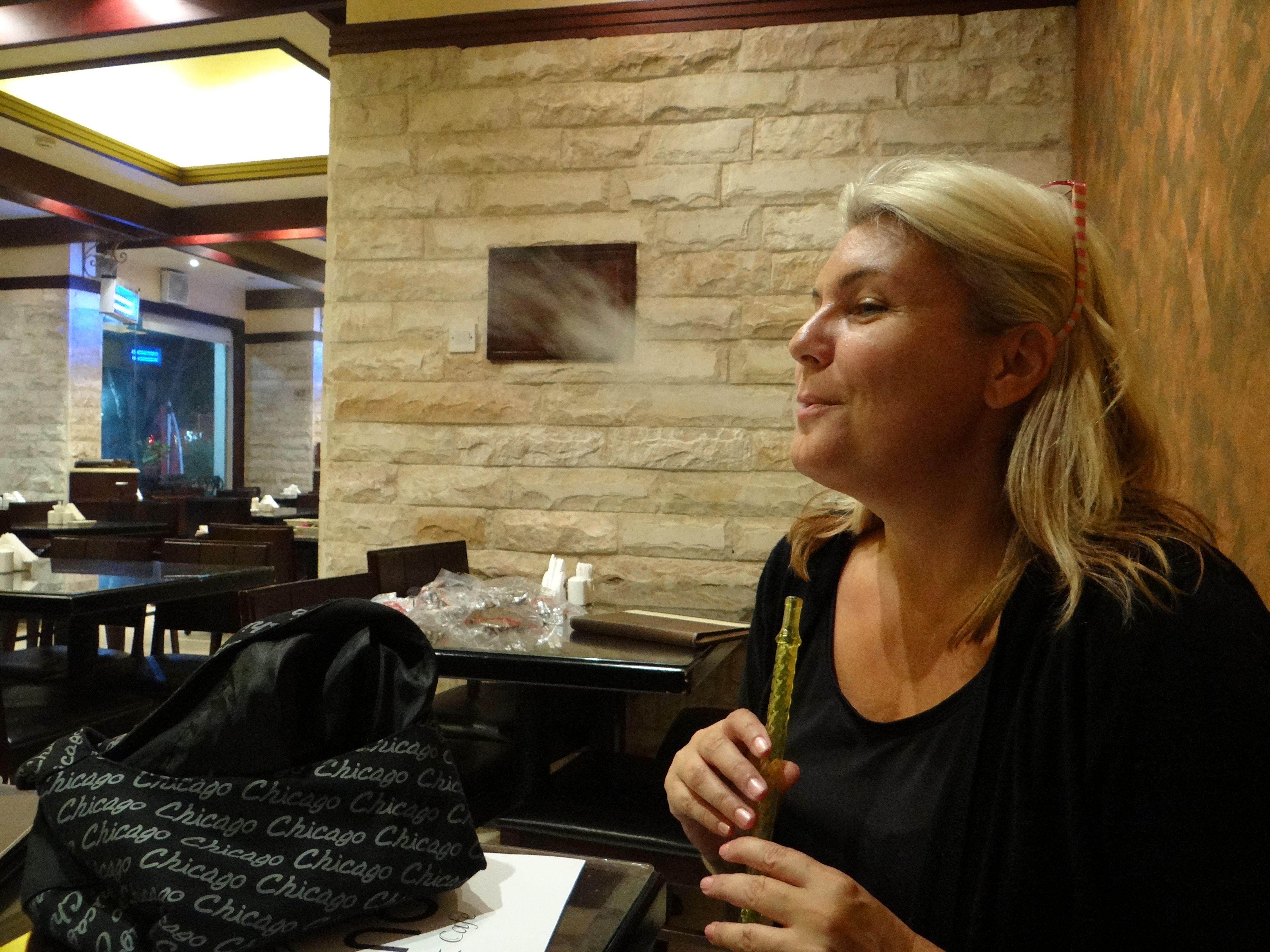 smoking shisha at a Lebanese restaurant